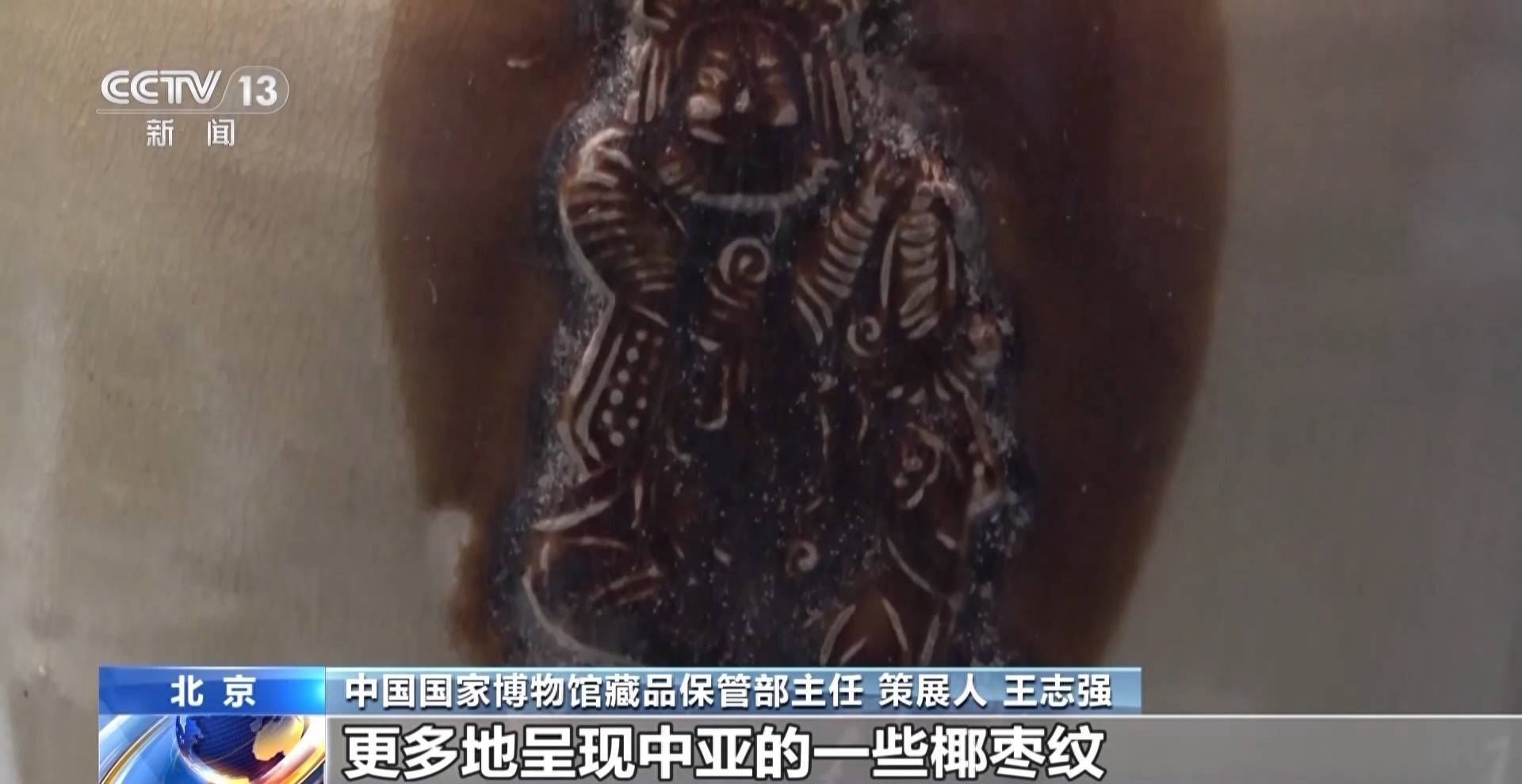中国国家博物馆藏品保管部主任 策展人 王志强:这次展出的长沙窑的执壶,呈现出中亚的一些椰枣纹,或者中亚波斯的胡人的形象,当时就已经开始有定制的瓷器出现。